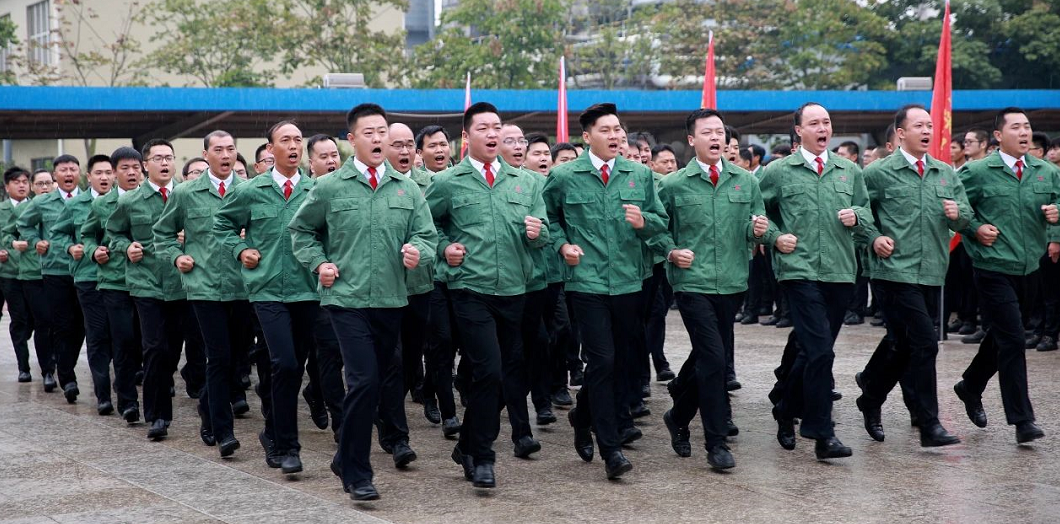 雖然退伍多年,劉興旭始終不忘部隊(duì)的恩情,把軍營(yíng)文化引進(jìn)企業(yè):每周一,要雷打不動(dòng)的舉行升旗儀式,對(duì)員工進(jìn)行愛國(guó)主義教育;員工在廠區(qū)行動(dòng)有固定路線,兩人成排、三人成行;職工宿舍干凈整潔,被子個(gè)個(gè)疊得像 “豆腐塊”;一年一度的全員軍事隊(duì)列會(huì)操,30多個(gè)綠色的方隊(duì)斗志昂揚(yáng)地……廠區(qū)像軍營(yíng),員工像士兵。多年來(lái),心連心用軍營(yíng)文化打造出了一支“特別能吃苦、特別能戰(zhàn)斗、特別能奉獻(xiàn)、特別能擔(dān)當(dāng)”的員工隊(duì)伍,為企業(yè)發(fā)展提供了人才支撐。