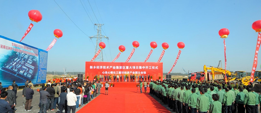 2011年10月14日上午,心連心公司四分廠建設(shè)工地彩旗飄揚,軍樂激昂,新鄉(xiāng)市經(jīng)濟(jì)技術(shù)產(chǎn)業(yè)集聚區(qū)重大項目心連心原料結(jié)構(gòu)調(diào)整項目,在心連心煤化工循環(huán)經(jīng)濟(jì)產(chǎn)業(yè)園建設(shè)工地隆重舉行。